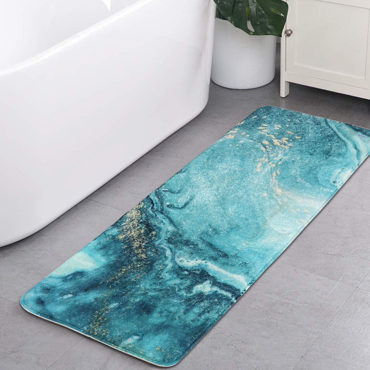 Amazon Com Haocoo Bath Rug Runner 18x47 Inch Turquoise Marble