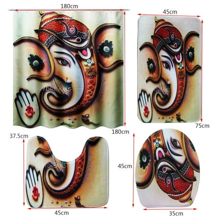 4in1 Elephant Bathroom Shower Curtain Lid Toilet Cover Bath