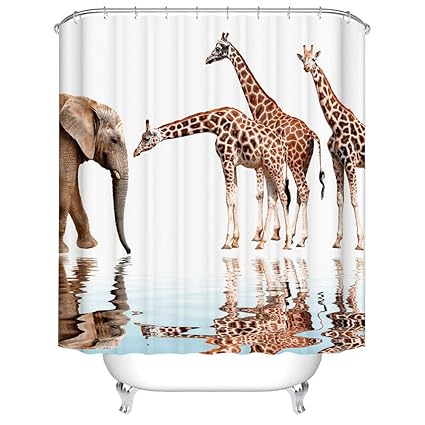Garden Curtains Shower Curtain Art Bathroom Decor Animals Giraffe