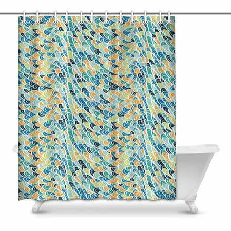Pop Peacock Colored Scales Bathroom Decor Shower Curtain Set 60x72