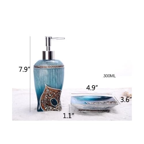 With a great toothbrush holder soap dispenser. Dynh watercolor peacock feather bathroom accessory set bird teal blue turquoise shower curtains with rug 4 pcs set 1 polyester fabric bath curtain 1 bath rug 1 toilet mat 1 toilet pad cover. 37 out of 5 stars 3.